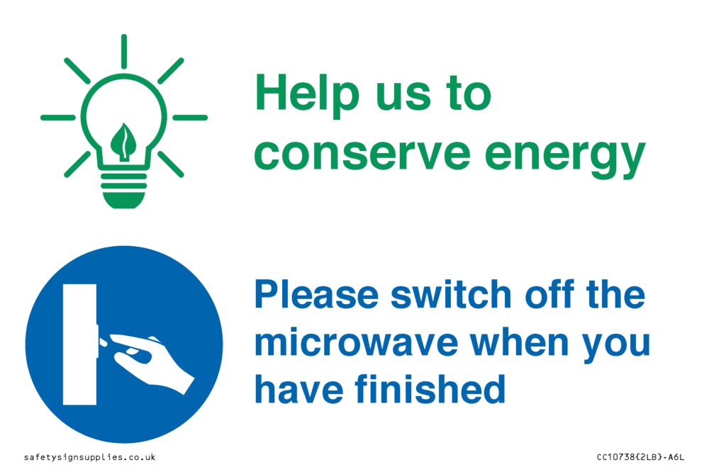 Help us to conserve energy - Switch off the microwave when you have finished Sign