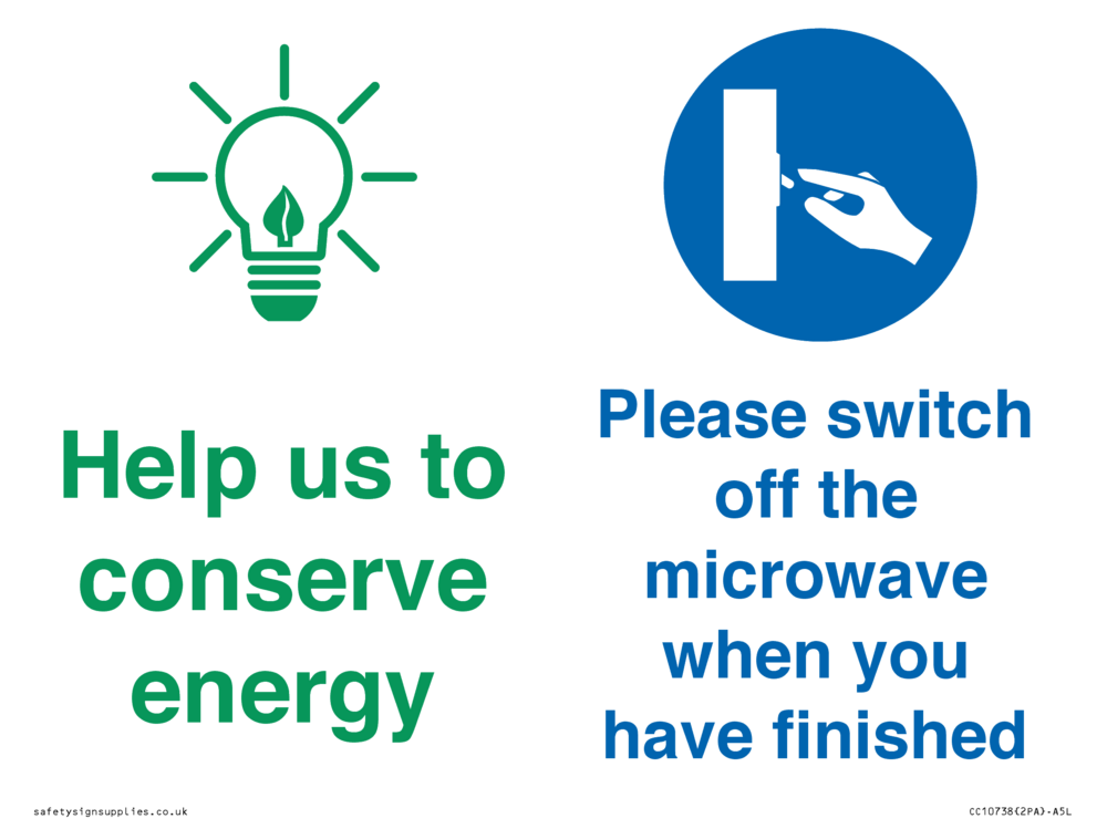 Help us to conserve energy - Switch off the microwave when you have finished Sign