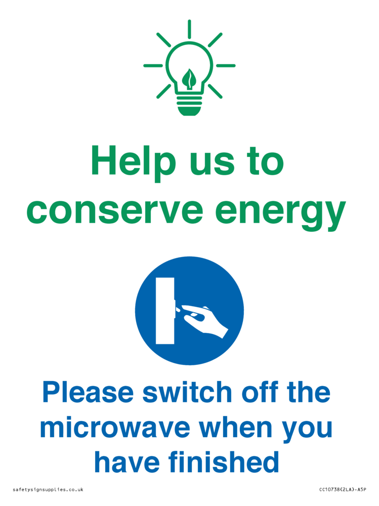 Help us to conserve energy - Switch off the microwave when you have finished Sign