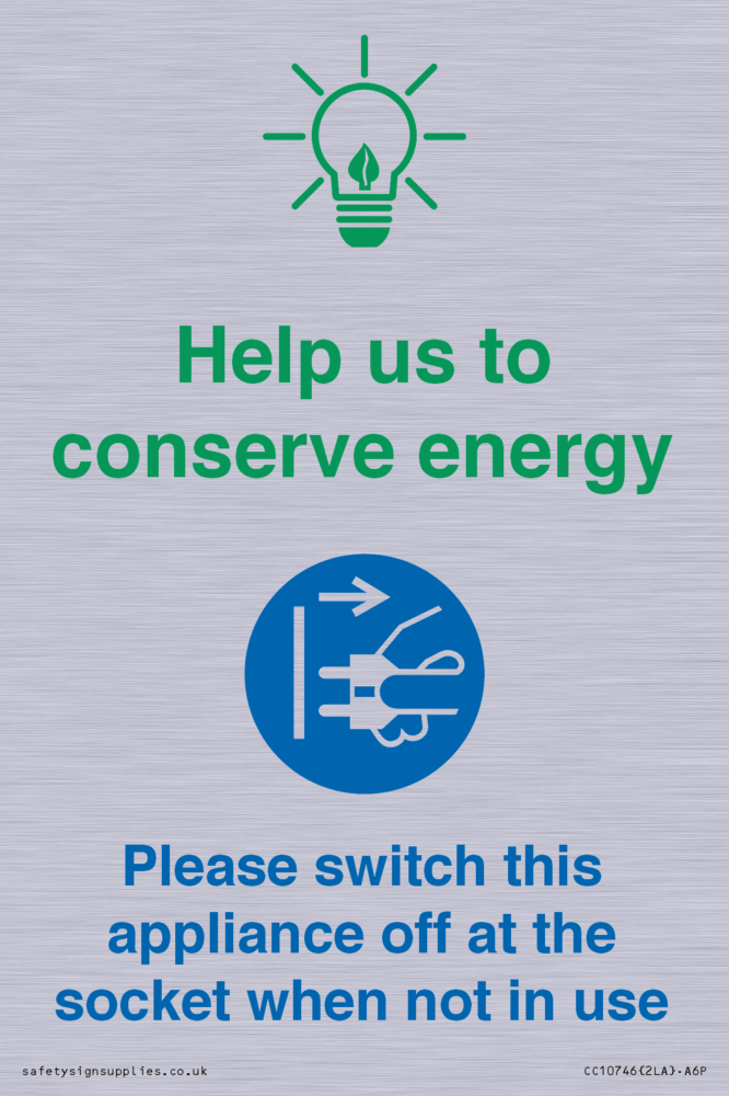Help us to conserve energy - Switch this appliance off at the socket when not in use Sign
