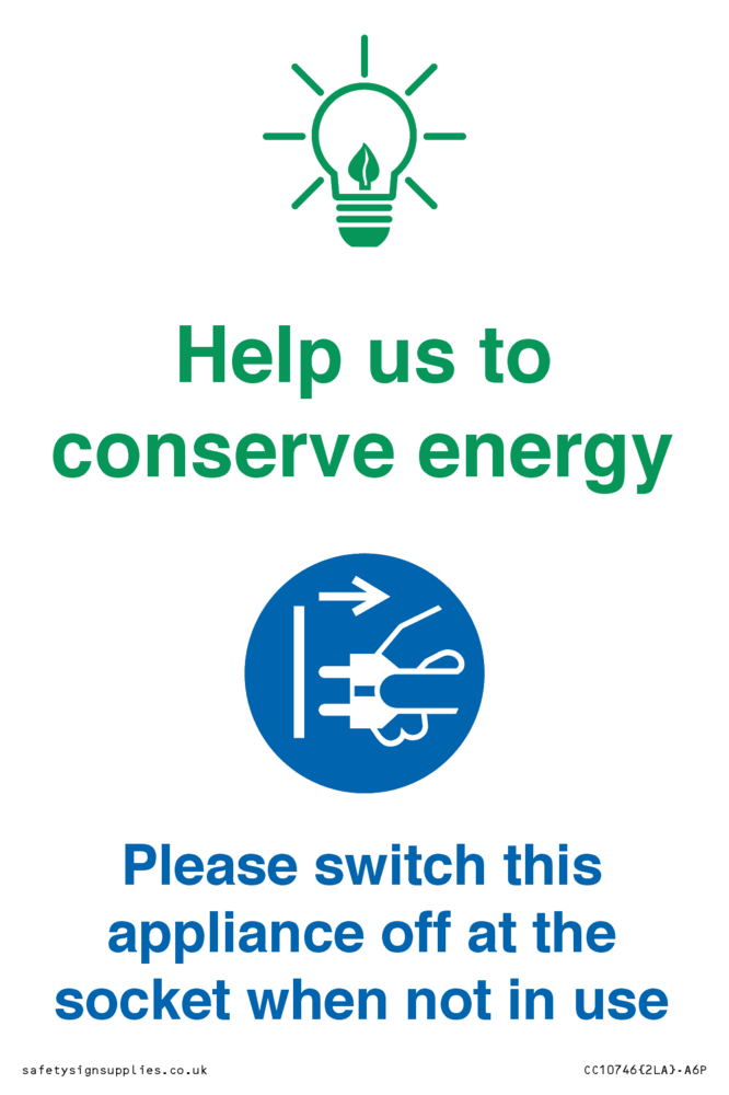 Help us to conserve energy - Switch this appliance off at the socket when not in use Sign