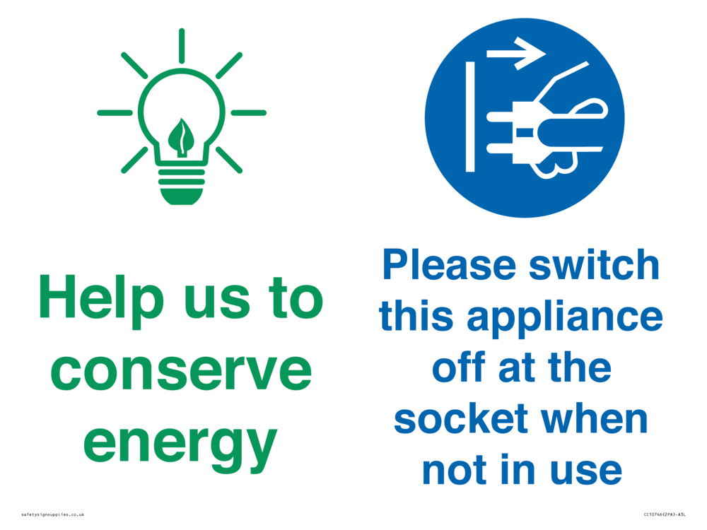Help us to conserve energy - Switch this appliance off at the socket when not in use Sign