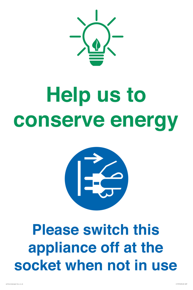 Help us to conserve energy - Switch this appliance off at the socket when not in use Sign