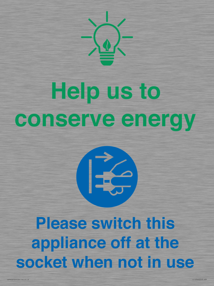 Help us to conserve energy - Switch this appliance off at the socket when not in use Sign