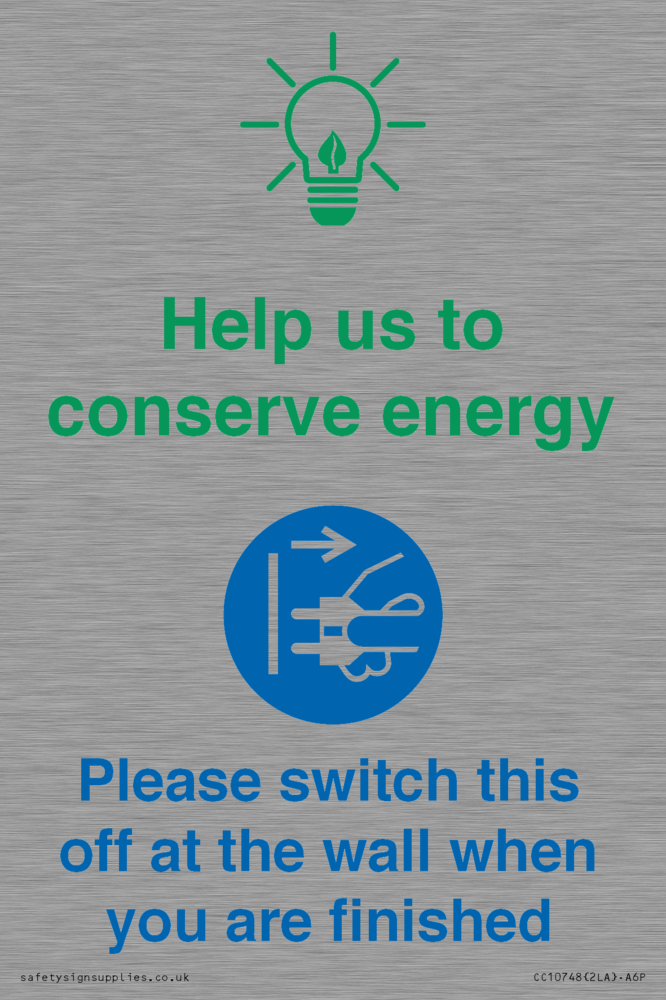 Help us to conserve energy - Switch this off at the wall when you are finished Sign