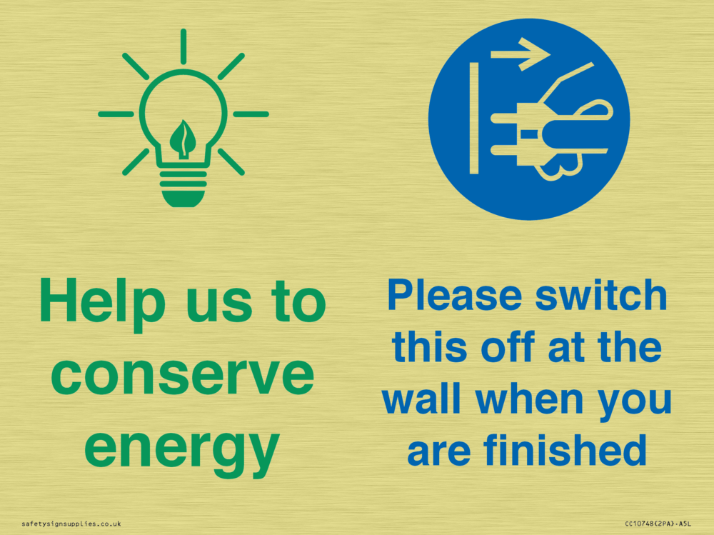 Help us to conserve energy - Switch this off at the wall when you are finished Sign