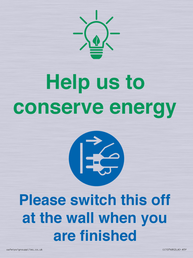 Help us to conserve energy - Switch this off at the wall when you are finished Sign