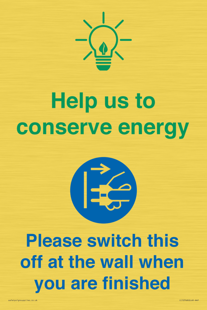 Help us to conserve energy - Switch this off at the wall when you are finished Sign