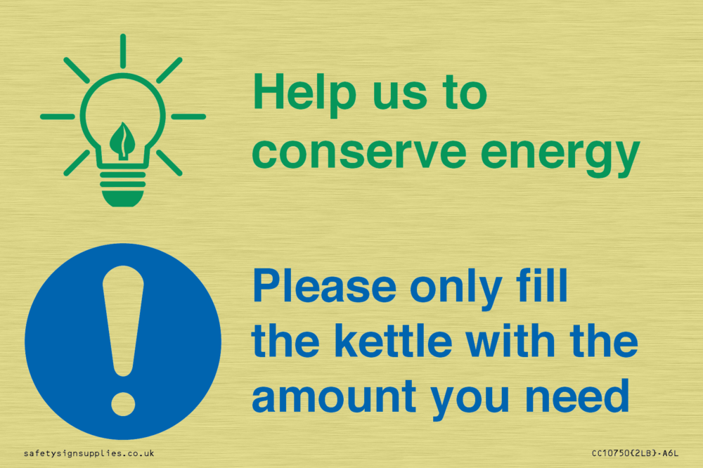 Help us to conserve energy - Only fill the kettle with the amount you need Sign