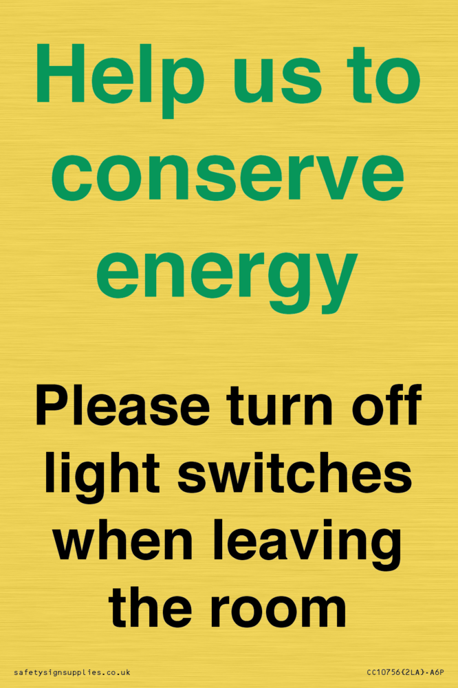 Help us to conserve energy - Please turn off light switches when leaving the room Sign