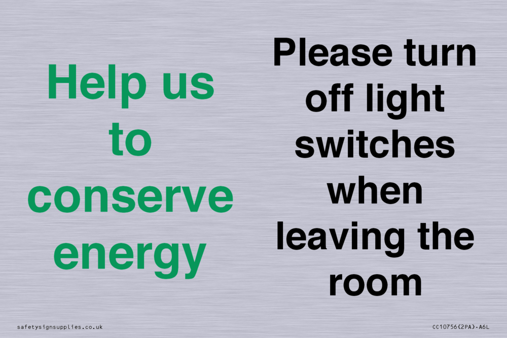 Help us to conserve energy - Please turn off light switches when leaving the room Sign