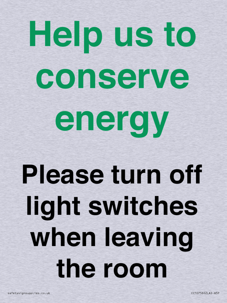 Help us to conserve energy - Please turn off light switches when leaving the room Sign
