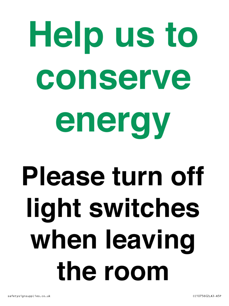 Help us to conserve energy - Please turn off light switches when leaving the room Sign
