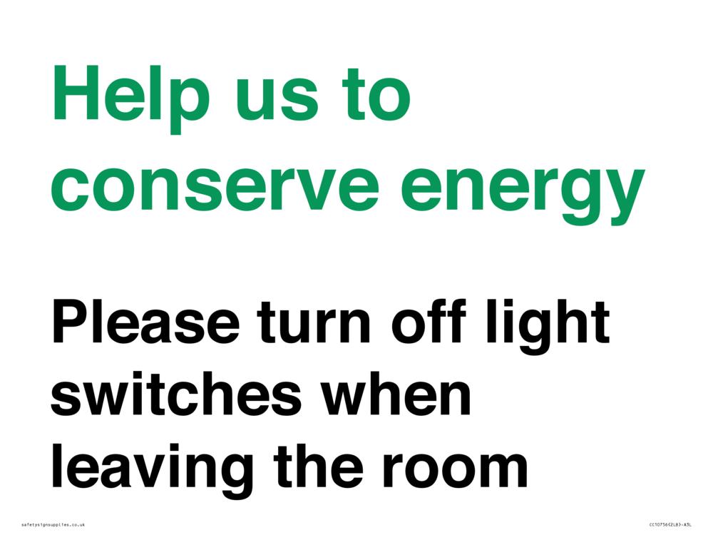 Help us to conserve energy - Please turn off light switches when leaving the room Sign