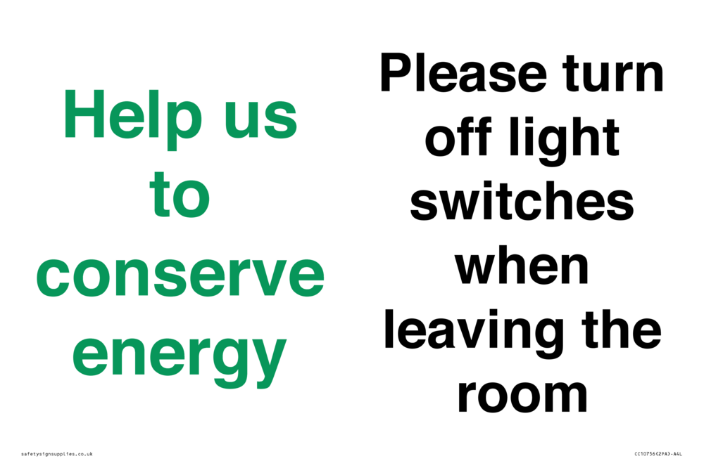 Help us to conserve energy - Please turn off light switches when leaving the room Sign