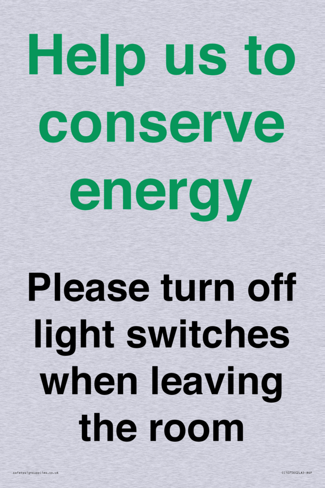 Help us to conserve energy - Please turn off light switches when leaving the room Sign