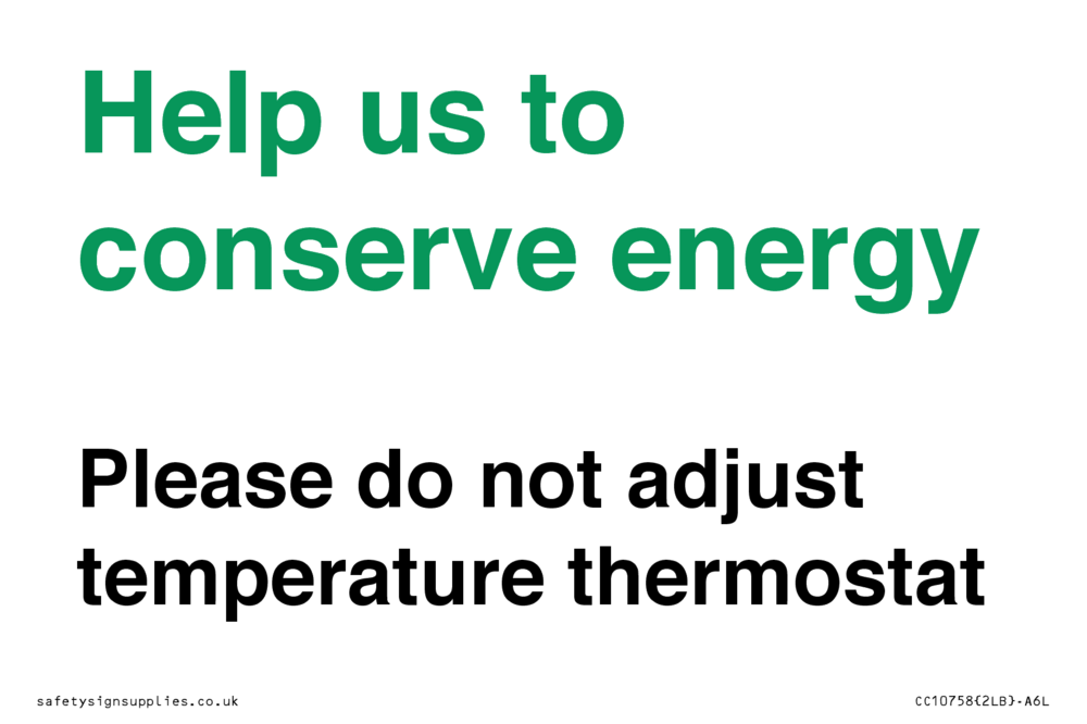 Help us to conserve energy - Please do not adjust temperature thermostat Sign