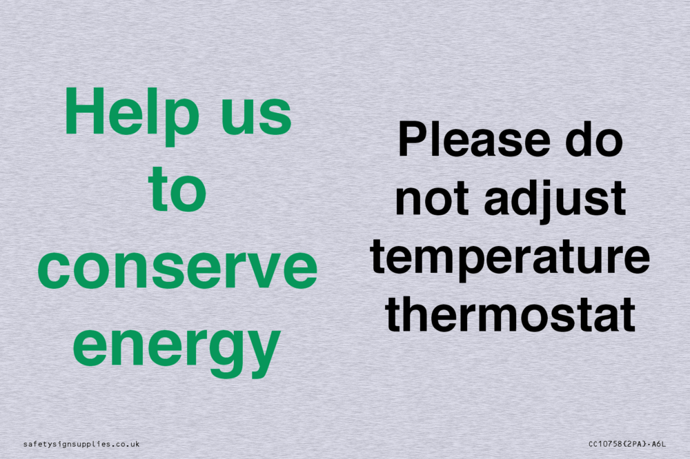 Help us to conserve energy - Please do not adjust temperature thermostat Sign