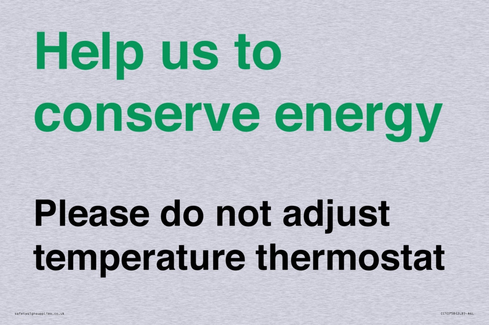 Help us to conserve energy - Please do not adjust temperature thermostat Sign