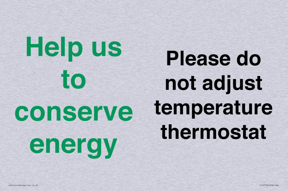 Help us to conserve energy - Please do not adjust temperature thermostat Sign