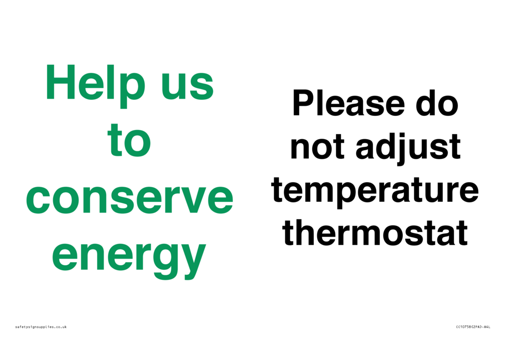 Help us to conserve energy - Please do not adjust temperature thermostat Sign