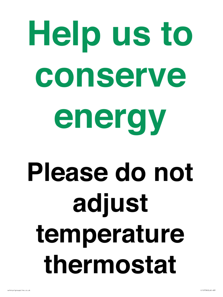 Help us to conserve energy - Please do not adjust temperature thermostat Sign