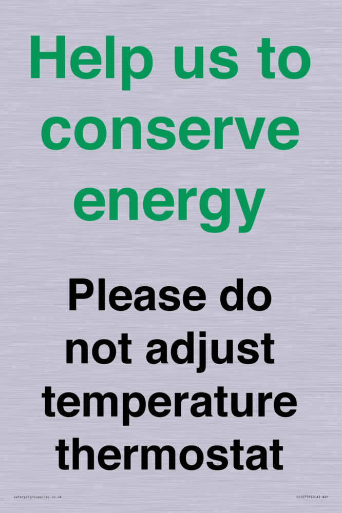 Help us to conserve energy - Please do not adjust temperature thermostat Sign