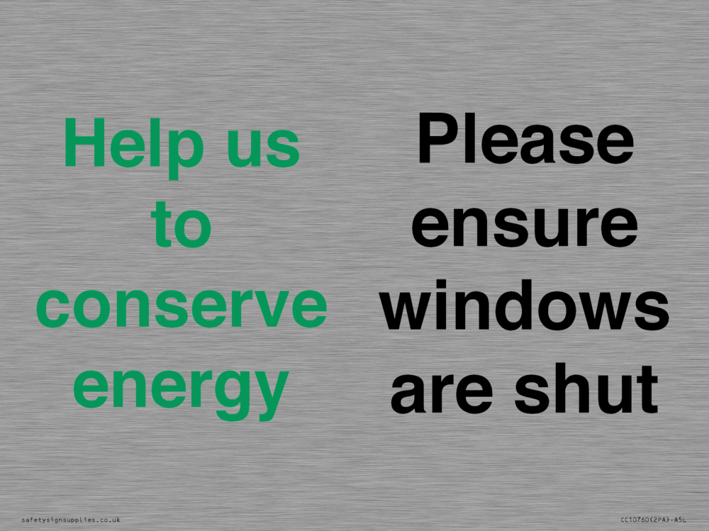 Help us to conserve energy - Please ensure windows are shut Sign