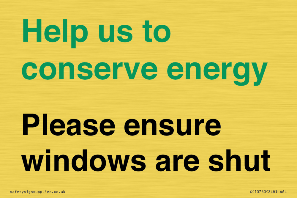 Help us to conserve energy - Please ensure windows are shut Sign