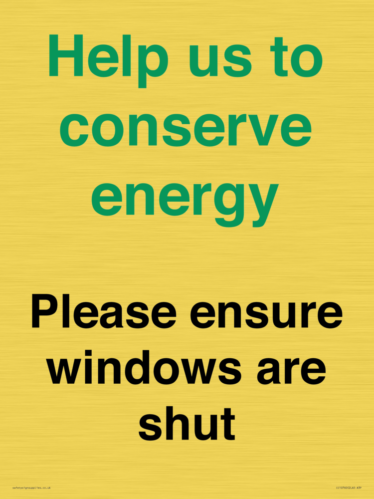 Help us to conserve energy - Please ensure windows are shut Sign