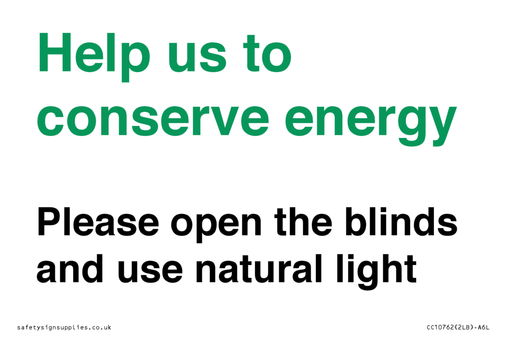 Help us to conserve energy - Please open the blinds and use natural light Sign