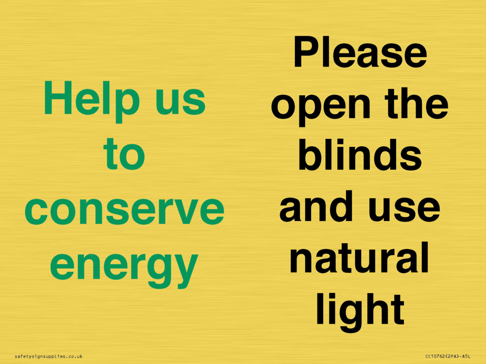Help us to conserve energy - Please open the blinds and use natural light Sign