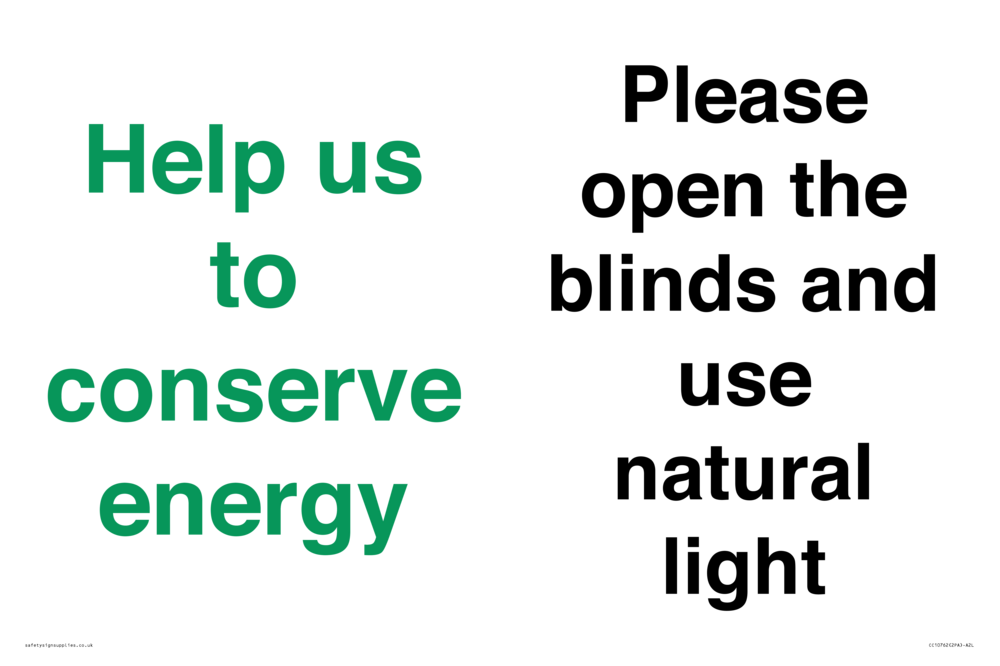 Help us to conserve energy - Please open the blinds and use natural light Sign