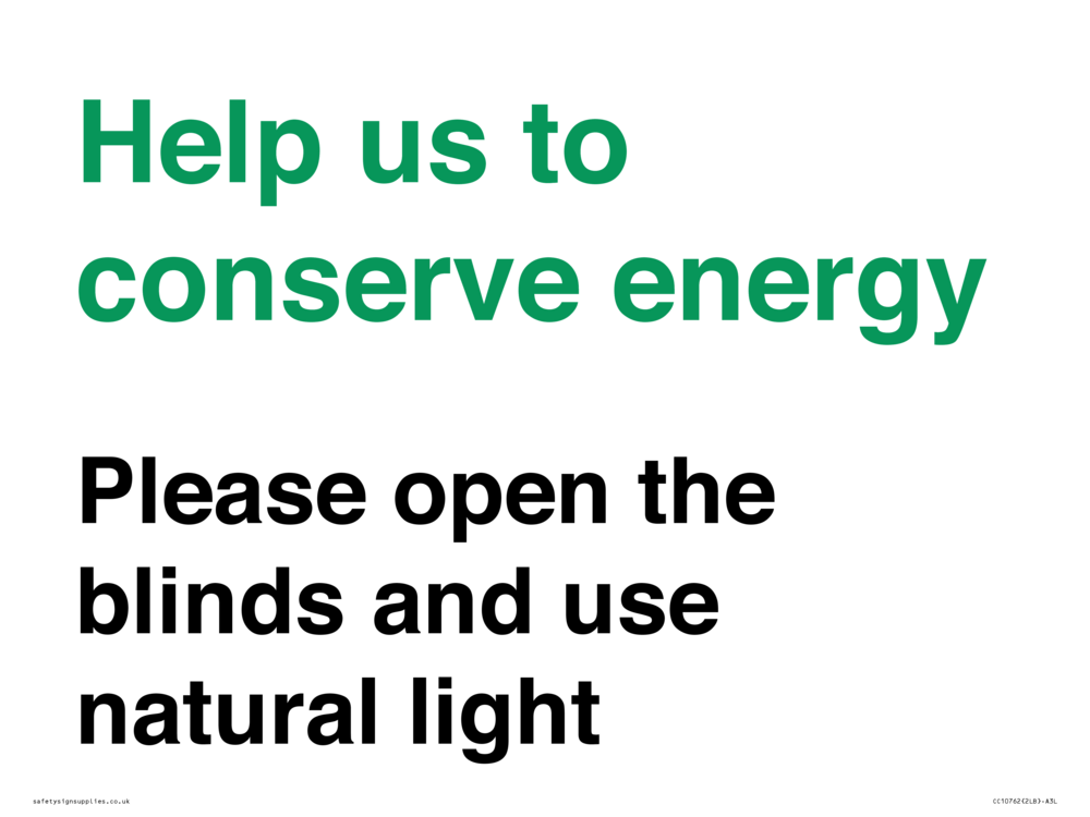 Help us to conserve energy - Please open the blinds and use natural light Sign