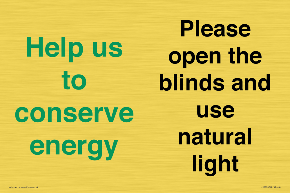 Help us to conserve energy - Please open the blinds and use natural light Sign