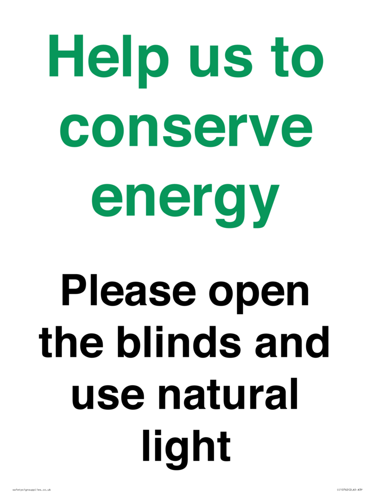 Help us to conserve energy - Please open the blinds and use natural light Sign