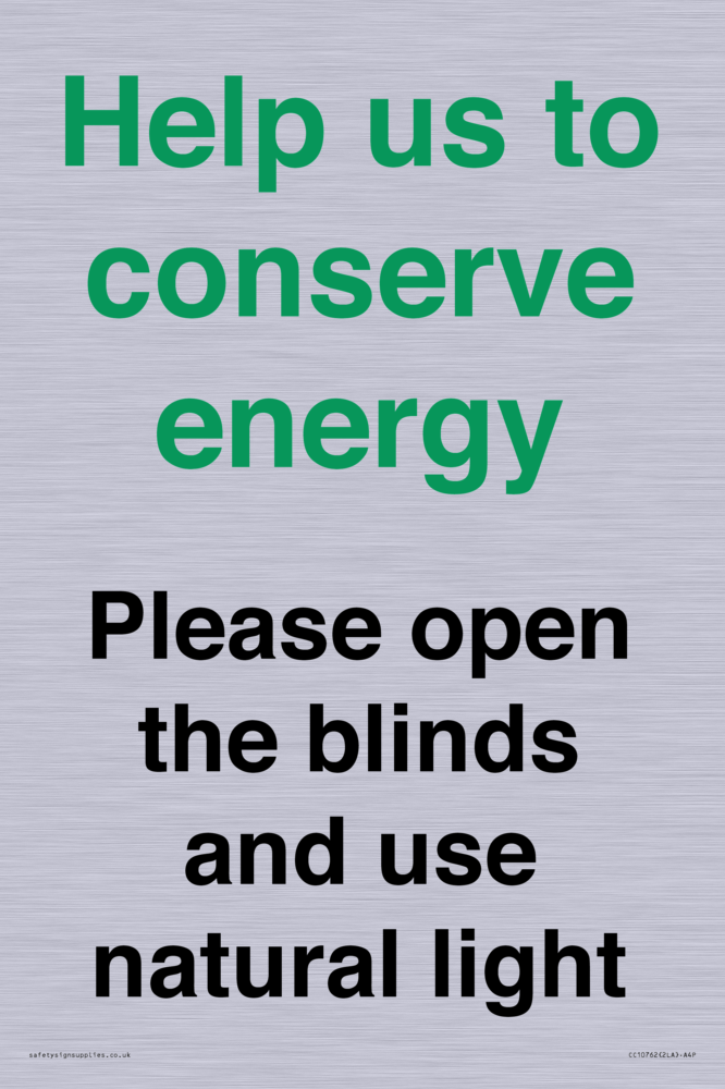 Help us to conserve energy - Please open the blinds and use natural light Sign