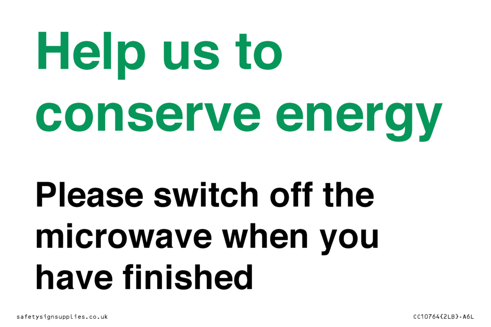 Help us to conserve energy - Please switch off the microwave when you have finished Sign