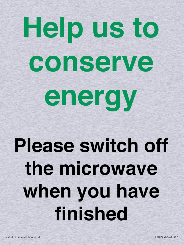 Help us to conserve energy - Please switch off the microwave when you have finished Sign