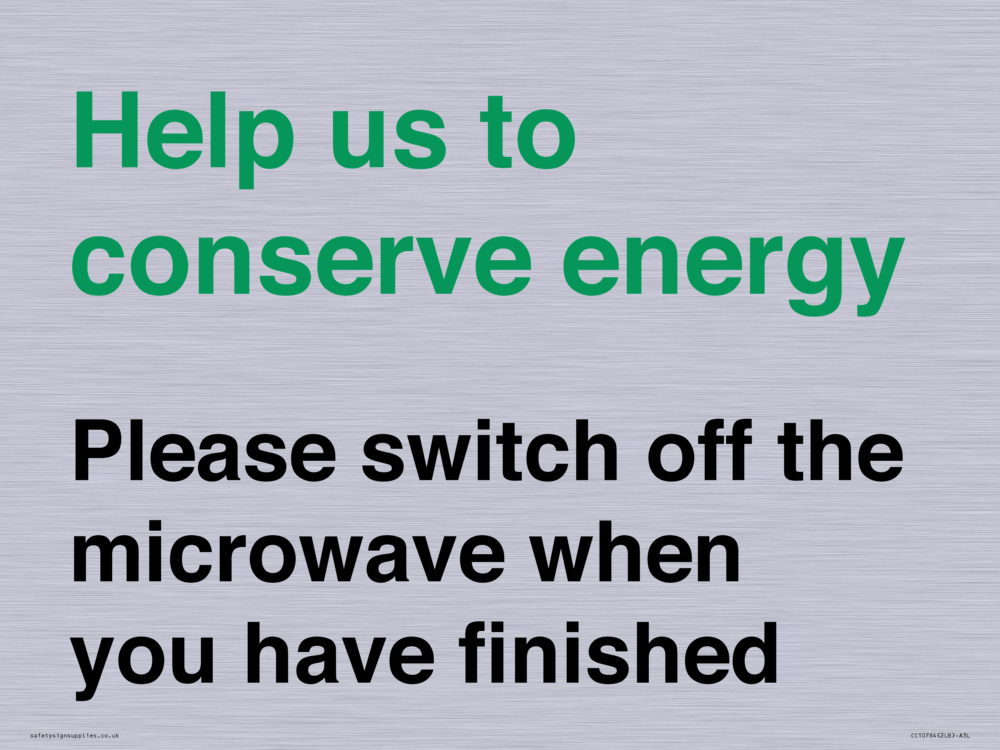 Help us to conserve energy - Please switch off the microwave when you have finished Sign