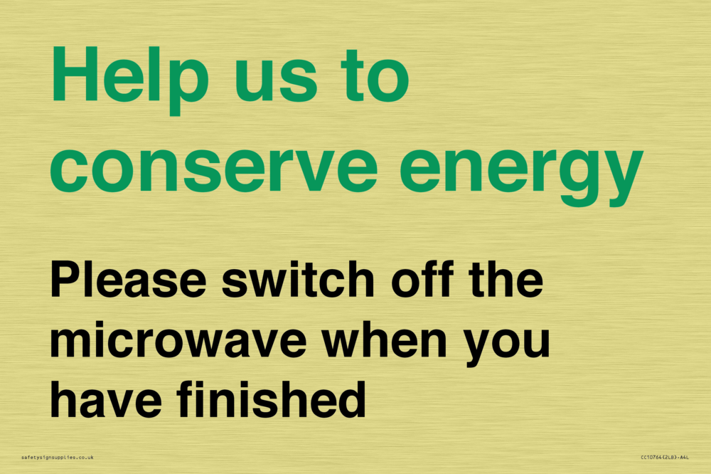 Help us to conserve energy - Please switch off the microwave when you have finished Sign