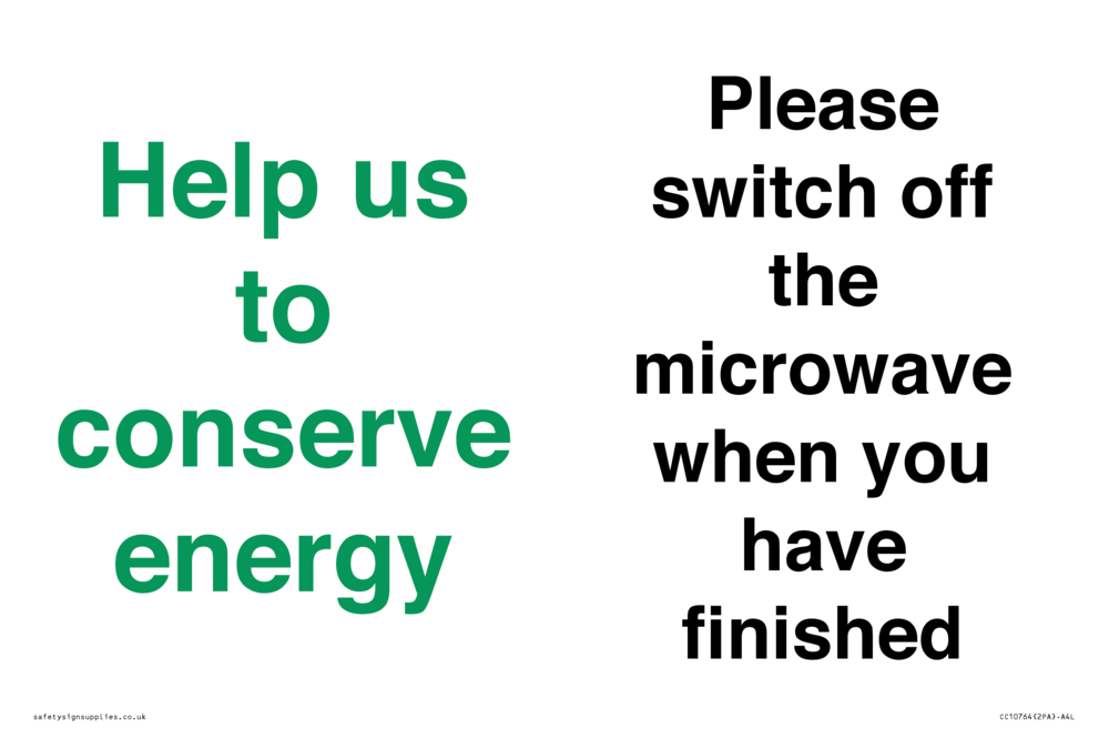 Help us to conserve energy - Please switch off the microwave when you have finished Sign