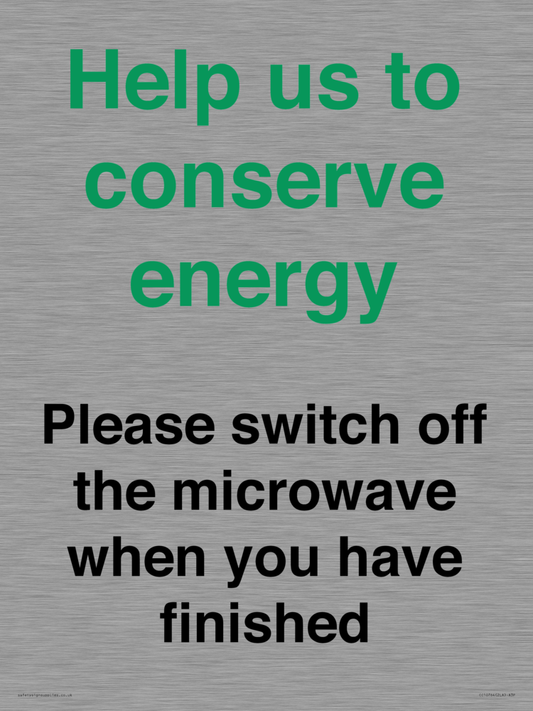 Help us to conserve energy - Please switch off the microwave when you have finished Sign