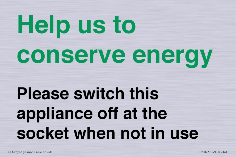 Help us to conserve energy - Please switch this appliance off at the socket when not in use Sign