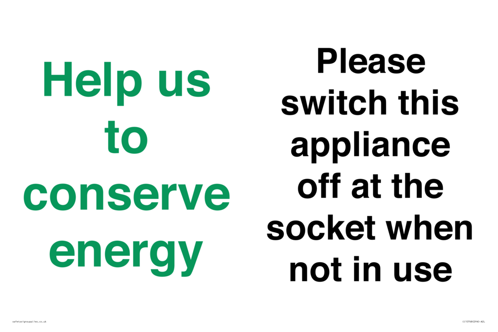 Help us to conserve energy - Please switch this appliance off at the socket when not in use Sign