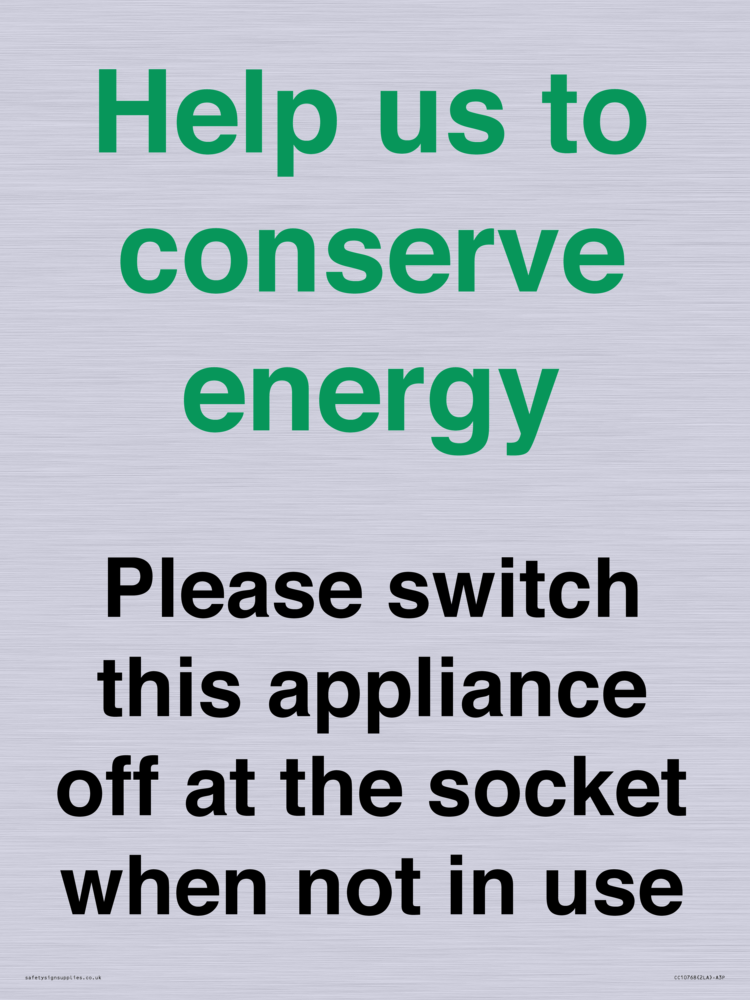 Help us to conserve energy - Please switch this appliance off at the socket when not in use Sign