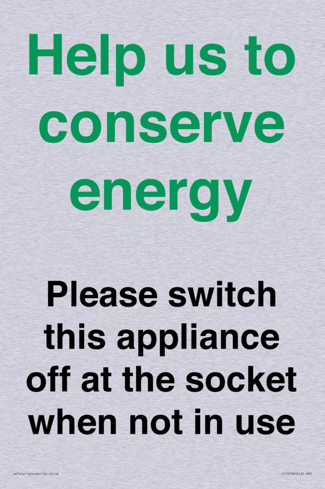 Help us to conserve energy - Please switch this appliance off at the socket when not in use Sign