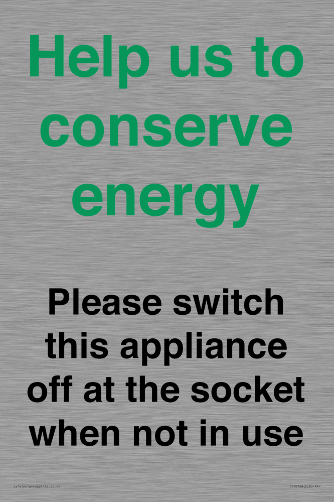 Help us to conserve energy - Please switch this appliance off at the socket when not in use Sign