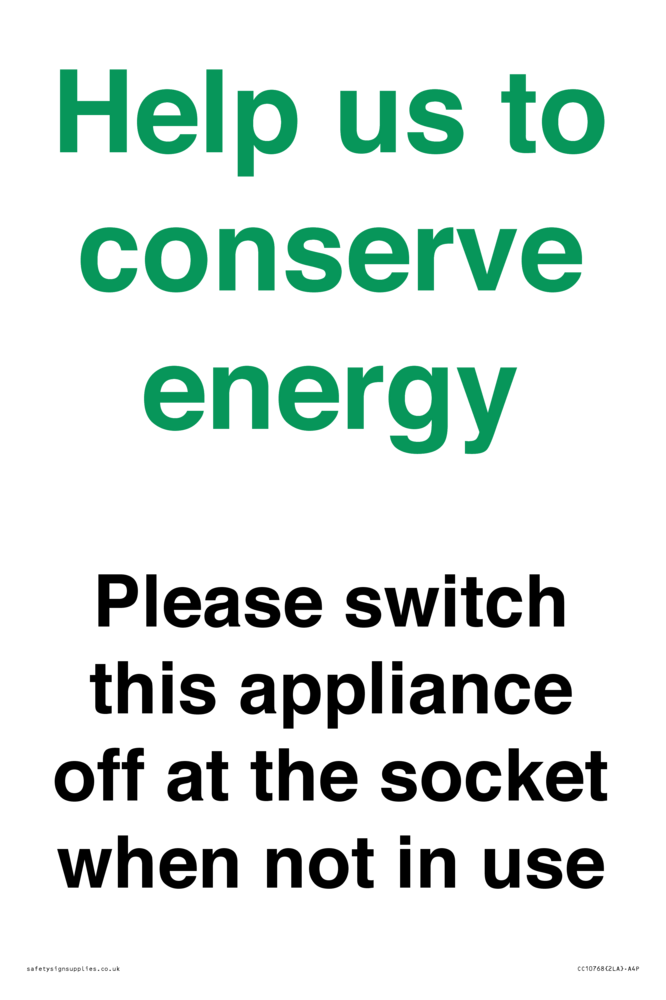 Help us to conserve energy - Please switch this appliance off at the socket when not in use Sign