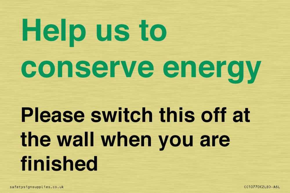 Help us to conserve energy - Please switch this off at the wall when you are finished Sign